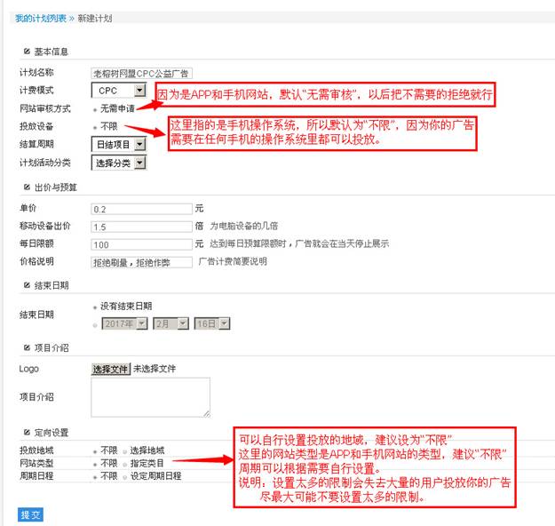 温馨提示:图例的设置仅供参考,具体的功能设置,如广告结束日期,功能设置等根据自己的推广需求,自由选择。